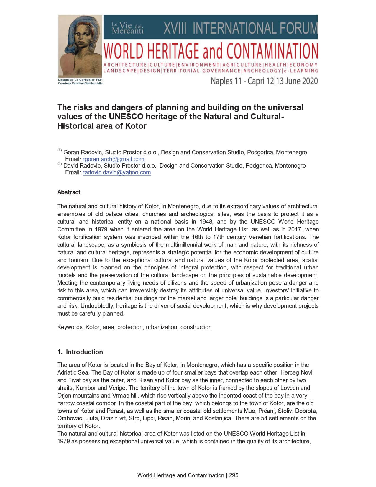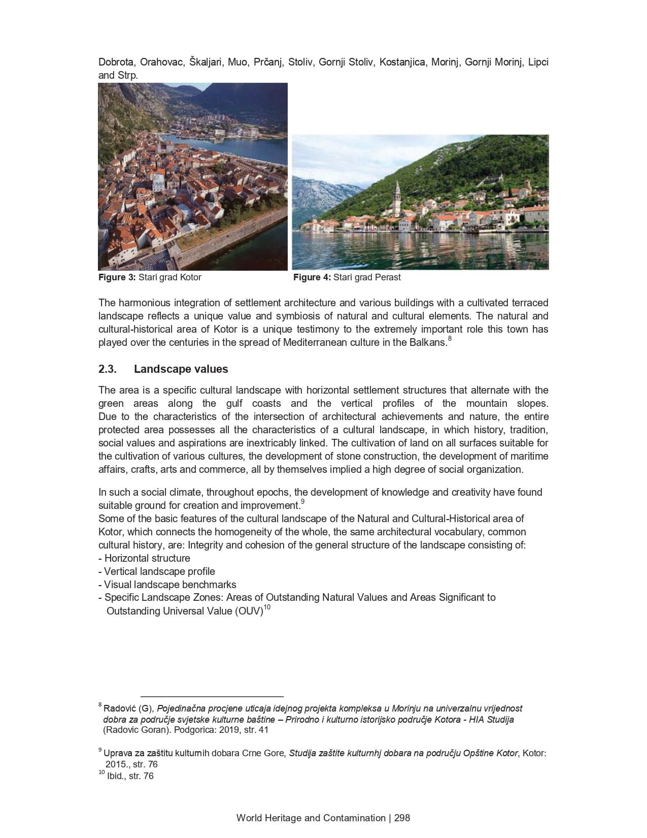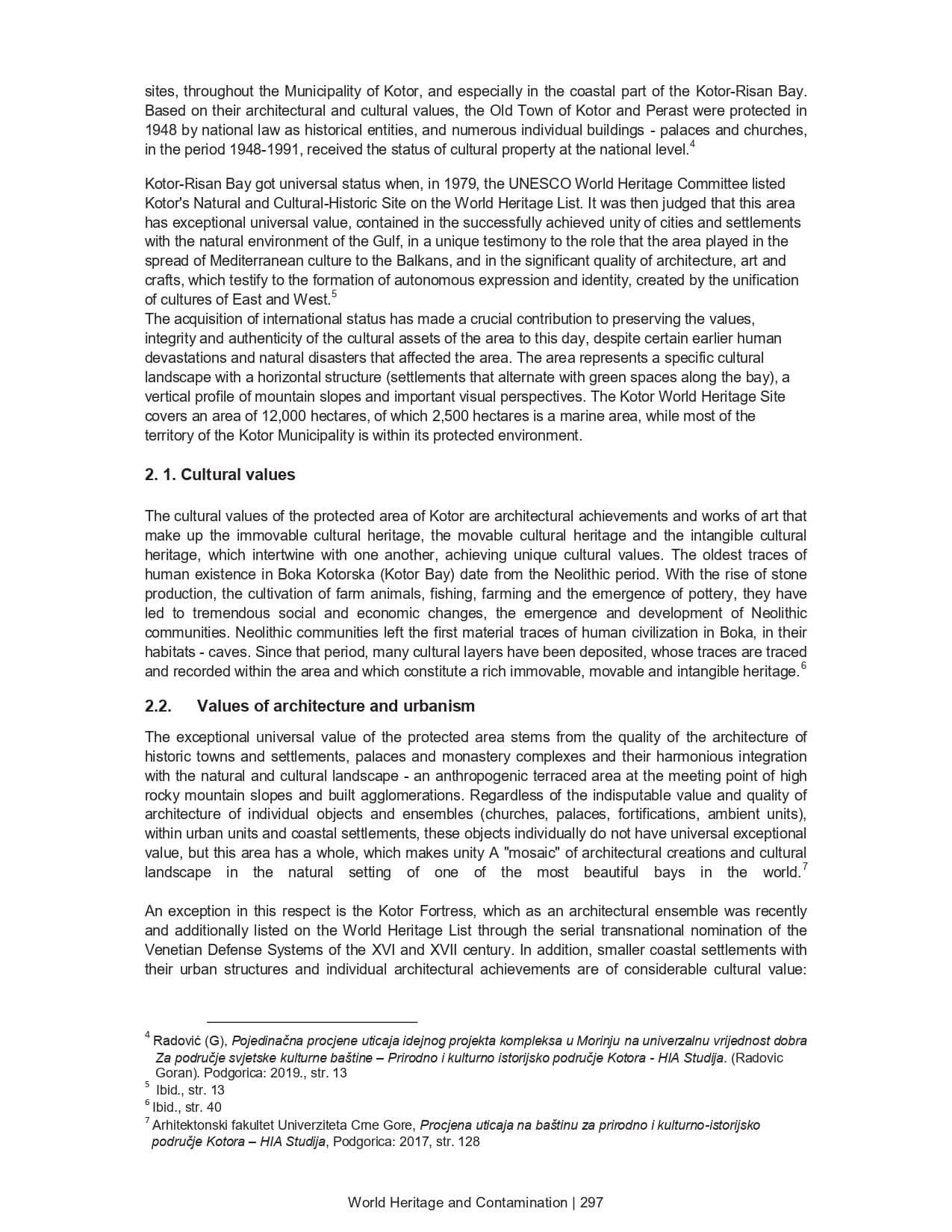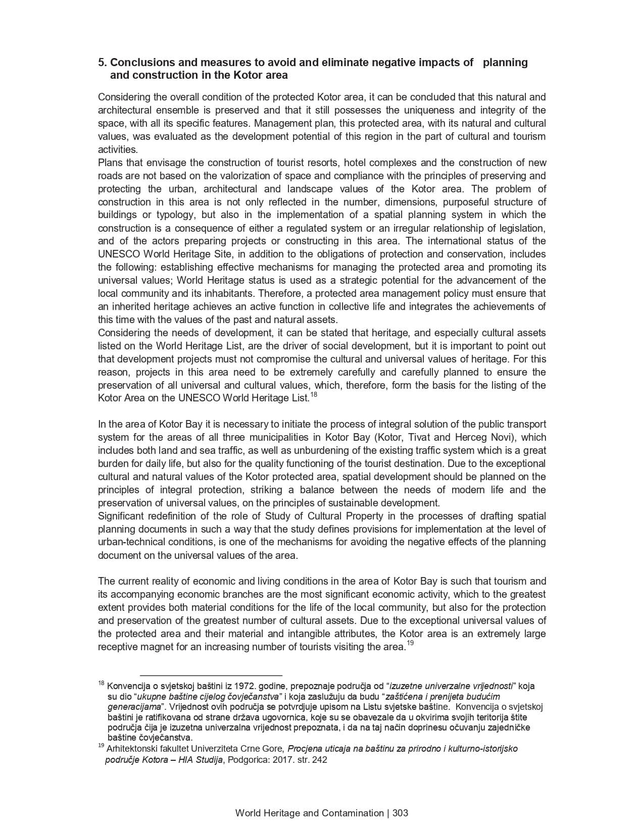 THE RISKS AND DANGERS OF PLANNING AND BUILDING ON THE UNIVERSAL VALUES OF THE UNESCO HERITAGE OF THE NATURAL NA CULTURAL-HISTORICAL AREA OF KOTOR